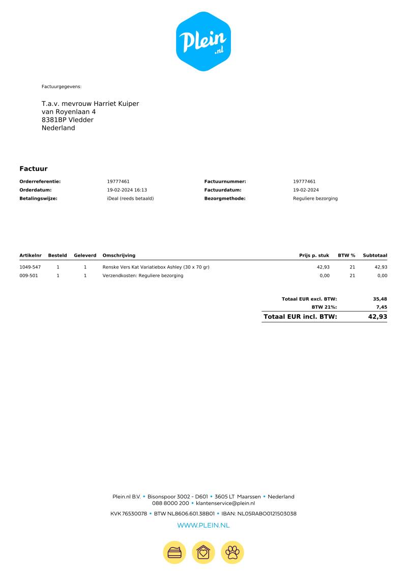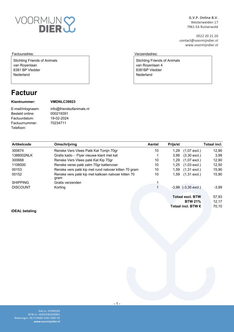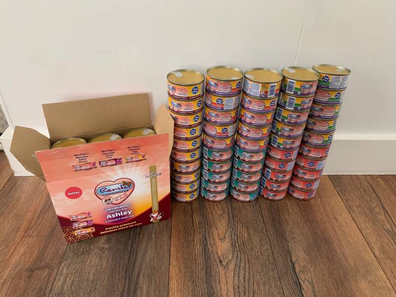 In een eerder bericht hadden we aangegeven dat we een aantal blikjes Renske kat en kip met groenten voor Hera hadden besteld omdat ze dit voer zo verschrikkelijk lekker vindt. Helaas kregen we bericht dat het niet meer leverbaar was en het geld werd terug gestort.