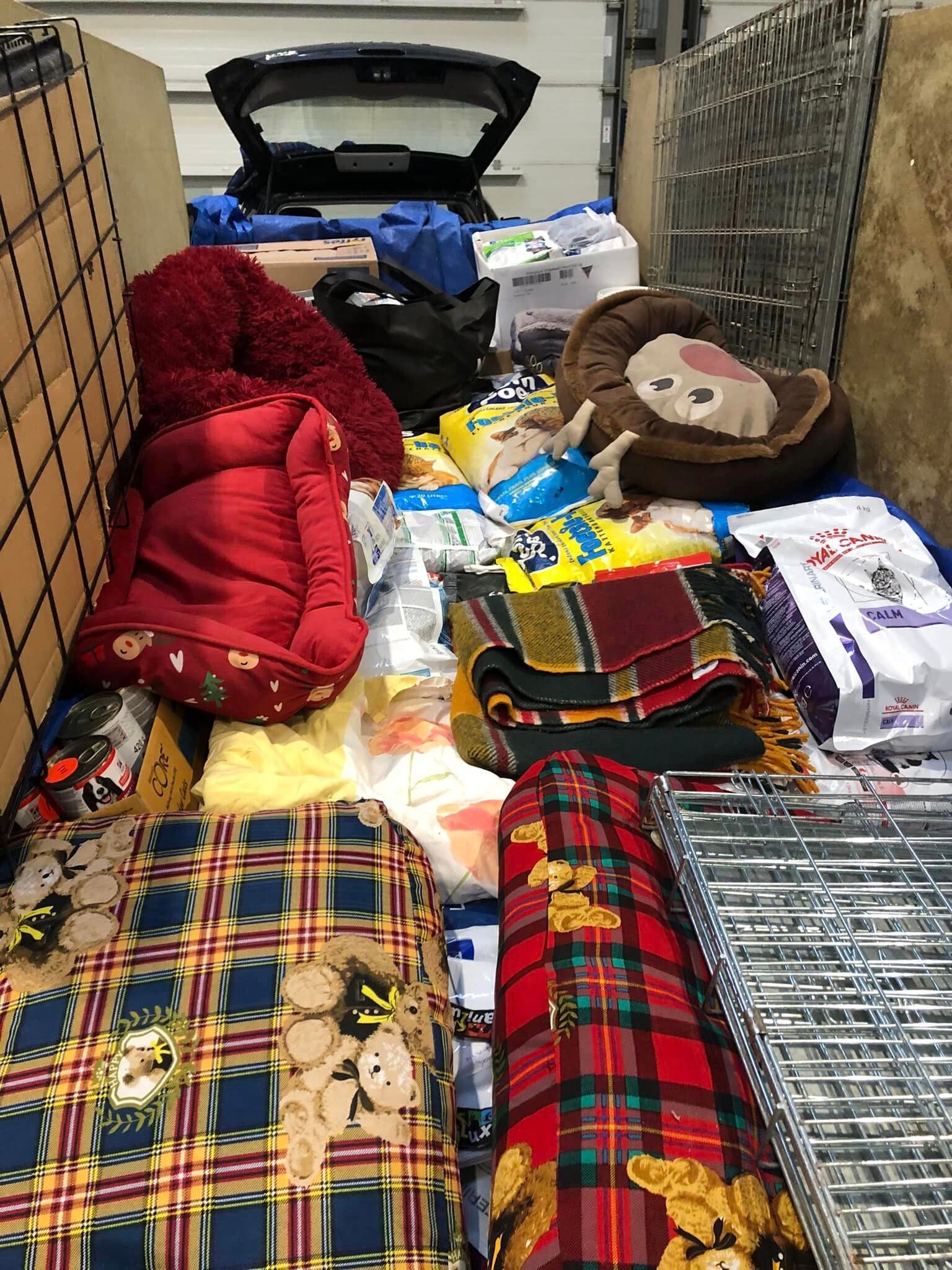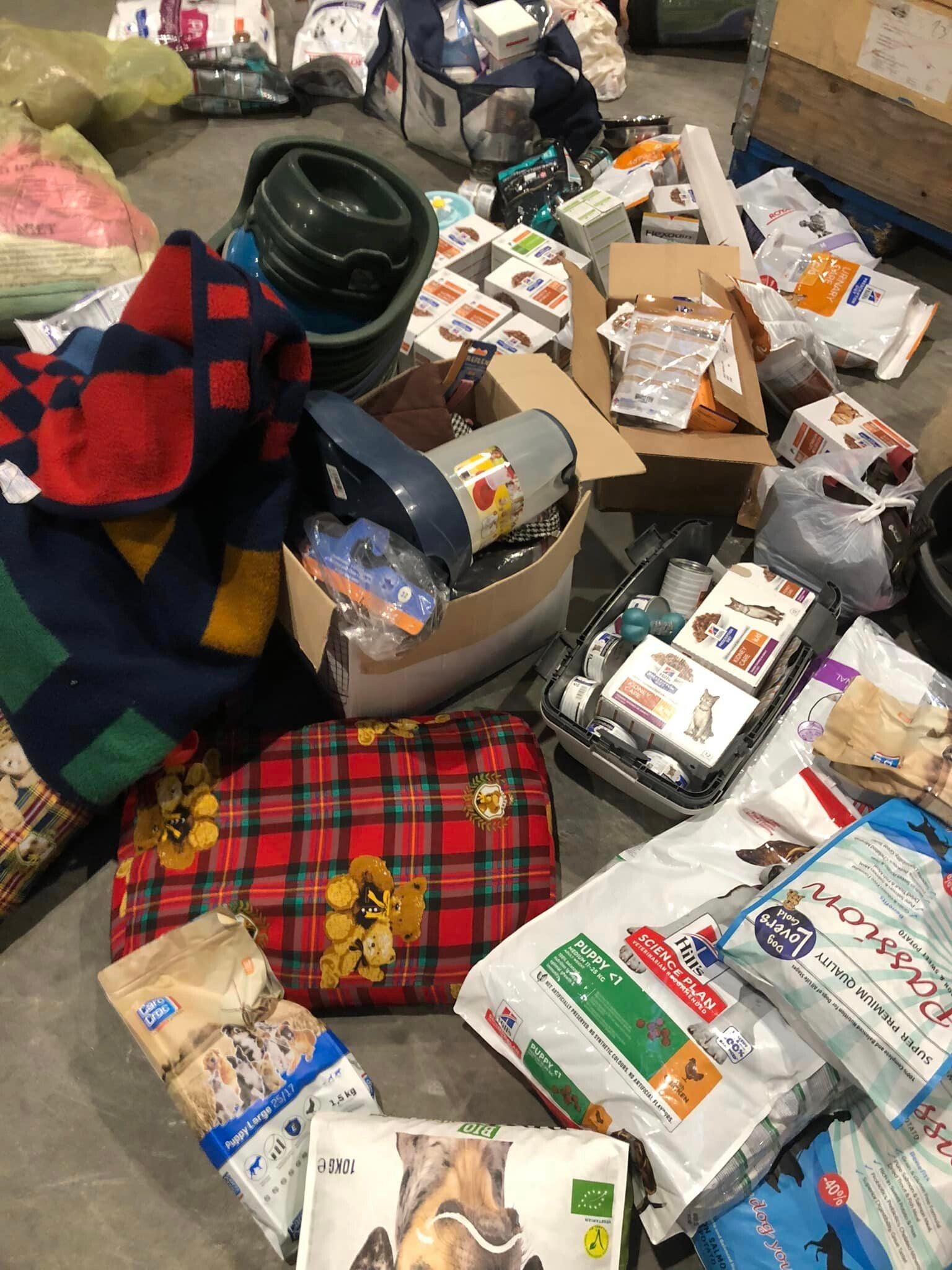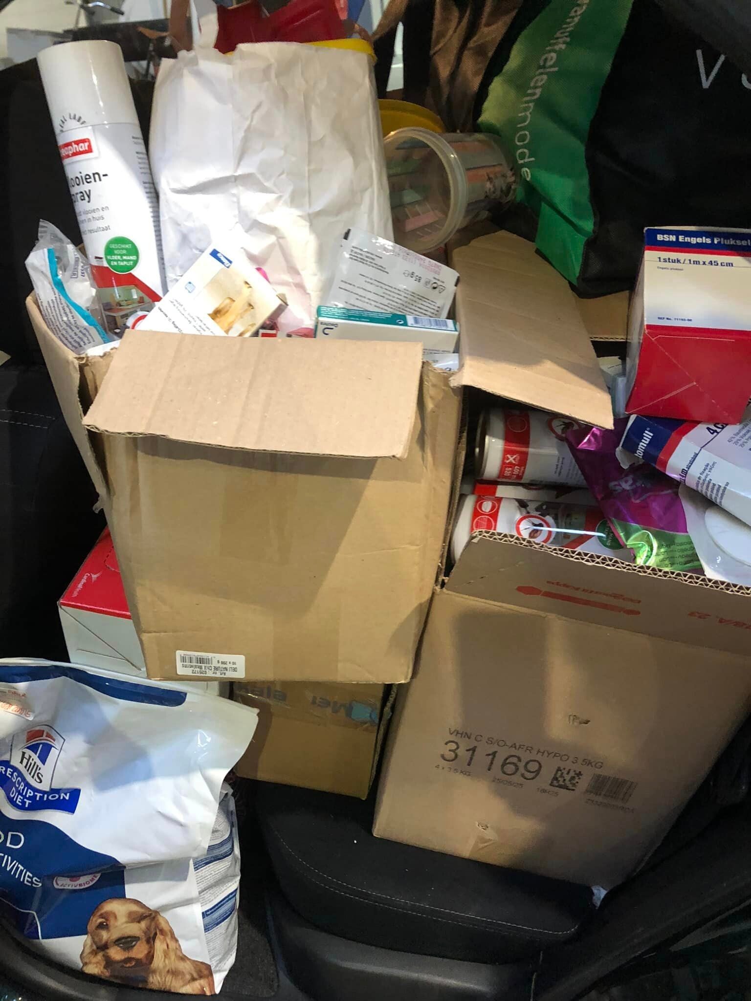 Lieve mensen, wat een hoop voer, medicijnen, dekens, manden, kussens, verband, kattenbakken, snoepjes, riemen, halsbandjes, speeltjes en ga zo nog maar even door! Hier gaan heel veel dieren weer enorm van genieten!!! Bedankt voor elke hartverwarmende donatie!!Samen staan we sterk!