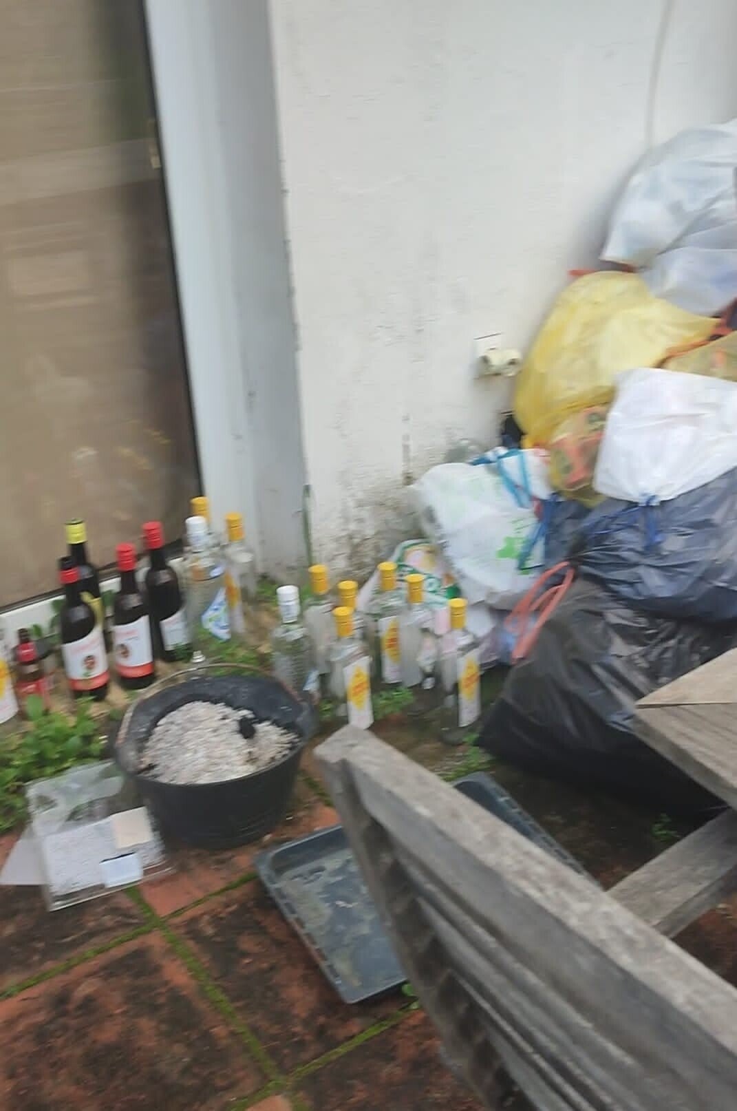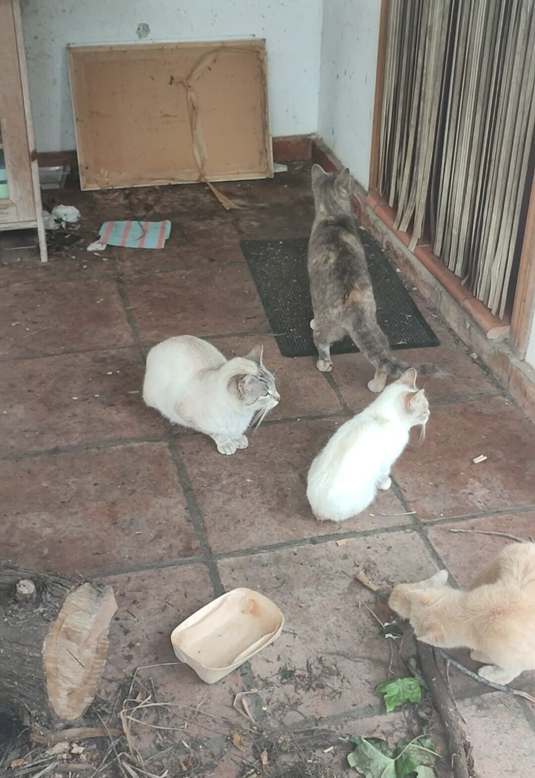 Deze 10 katten zijn achtergelaten, het veld/pand is verkocht en de personen zijn weg gegaan en hebben de katten achtergelaten. De plek waar ze verbleven was een vieze bende, drankflessen, vuilnis overal. Er liep een kat met een misvormde achterpoot, katten met ontstoken ogen, ademhalingsproblemen