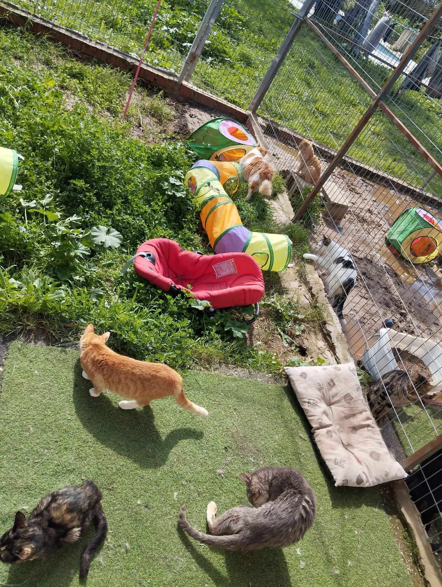 Nu ze de Nederlands kat voor ons wilde opvangen kwamen we weer in contact met haar en we vroegen foto's van haar opvang die ze naar ons stuurde. De katten zitten veilig in een ren en krijgen de zorg die ze nodig hebben. Maar we zagen op de foto's dat de katten echt wel aan nieuwe krabpalen toe zijn en wat bedjes, dekentjes enz.