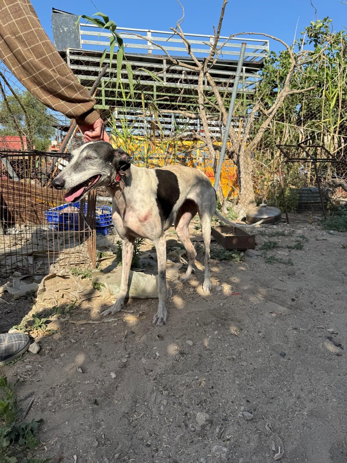 Het is gelijk al duidelijk hoe het leven van deze galgo is aan de manier waarop haar de baas, een jager haar vasthoudt..... dit hoeven we verder niet toelichten. Deze galgo moest weg en dan is het van weg ermee en ophalen die meuk of ik zorg zelf er wel voor dat ze verdwijnt.