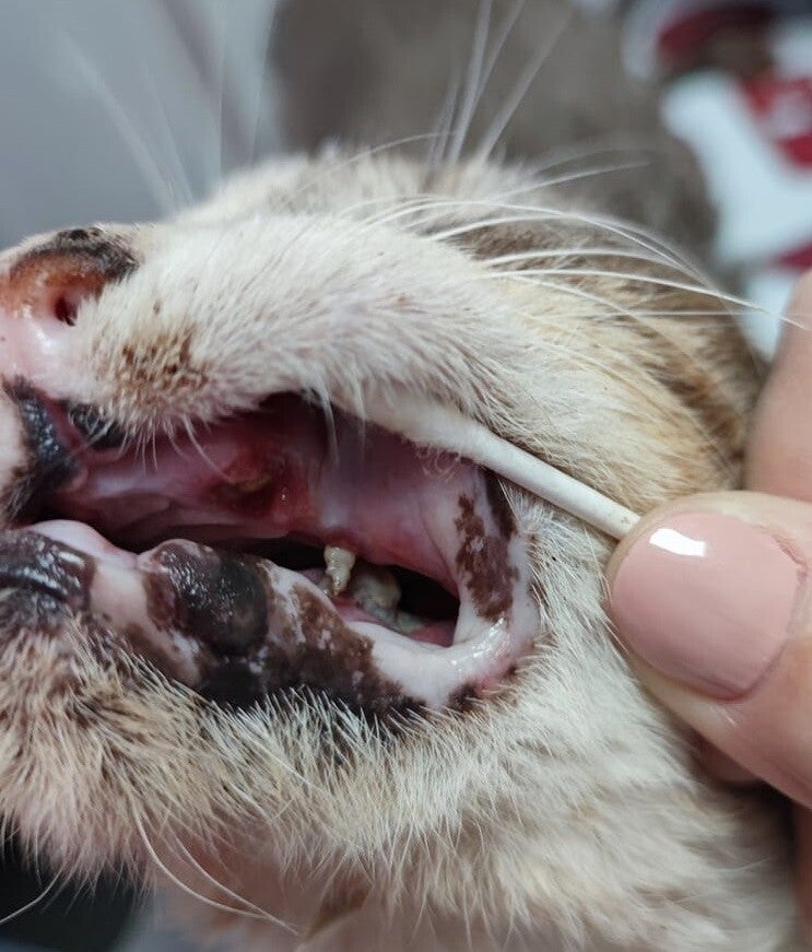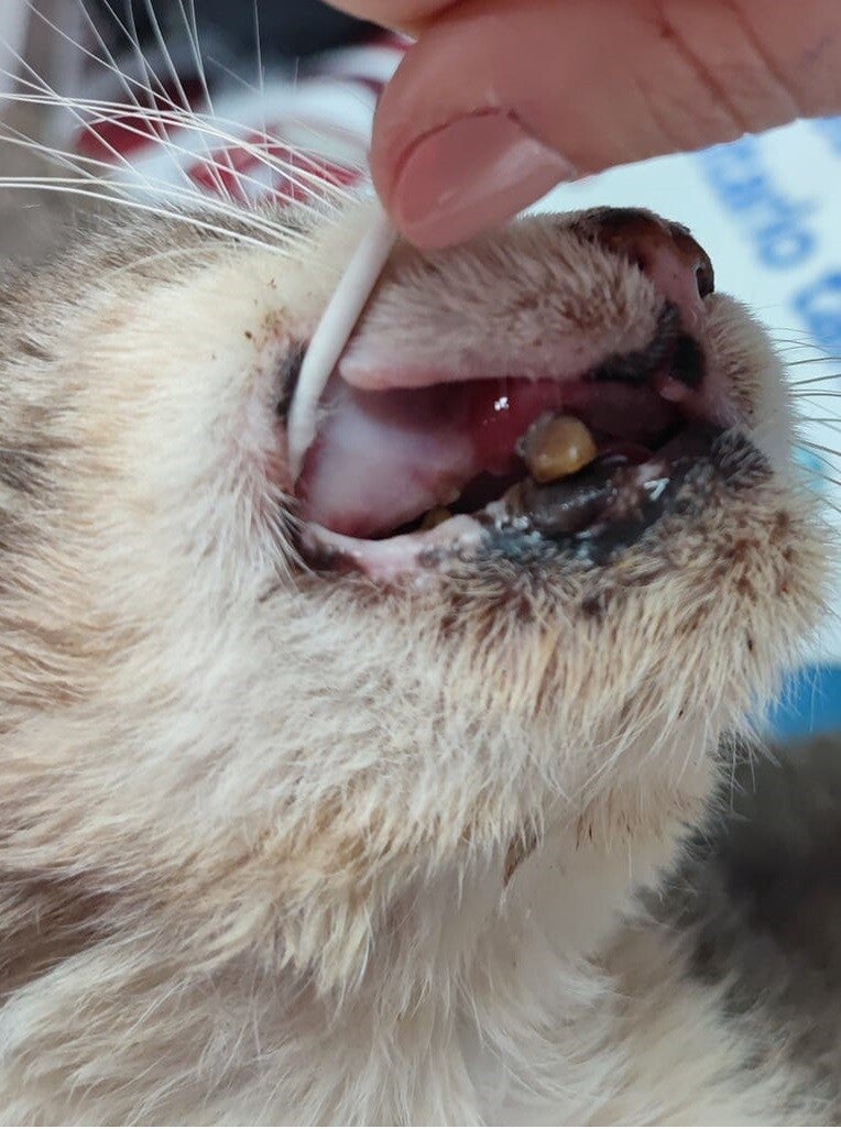 Momo, een oudere kat met FIV die een hele slecht gebit heeft. Hij is vrij goed, heeft eetlust en is sociaal en gek op knuffels. Momo heeft herhaaldelijk antibiotica gehad maar zijn gebit/tandvlees is er niet beter van geworden. Het enigste wat Momo helpt is het trekken van de kiezen waar hij last van heeft. De begroting van de dierenarts voor deze operatie ligt op 175 euro en dit geld hebben ze niet.