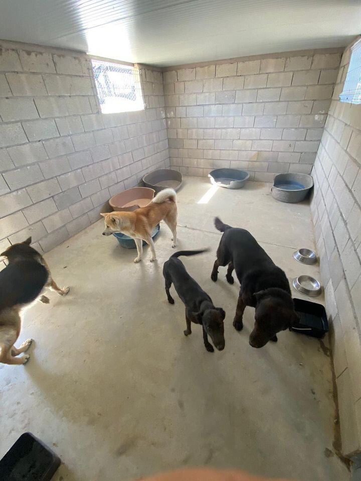 Er zijn 15 quarantaine ruimtes, 7 gemeenschappelijk ruimtes hier zitten niet meer dan 6 honden in.