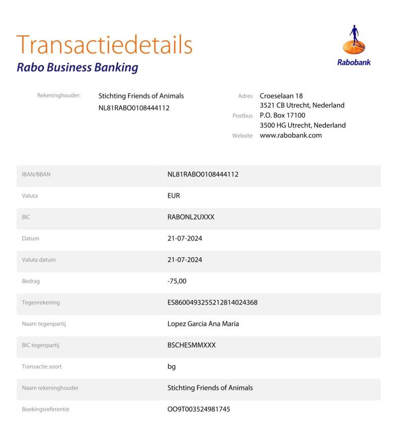 We hebben 75 euro naar Ana Lopez Garcia overgemaakt, hiervan heeft ze een grote zak 10 kg Royal Canin gekocht, deze mocht ze voor de helft van de prijs omdat hij bijna over datum was. Ana heeft ook 9 pipet anti vlo gekocht want op dit moment heerst er echt een vlooienplaag bij de kolonies. We gaan kijken of misschien nog wat extra geld kunnen sturen voor meer anti vlo pipetten.