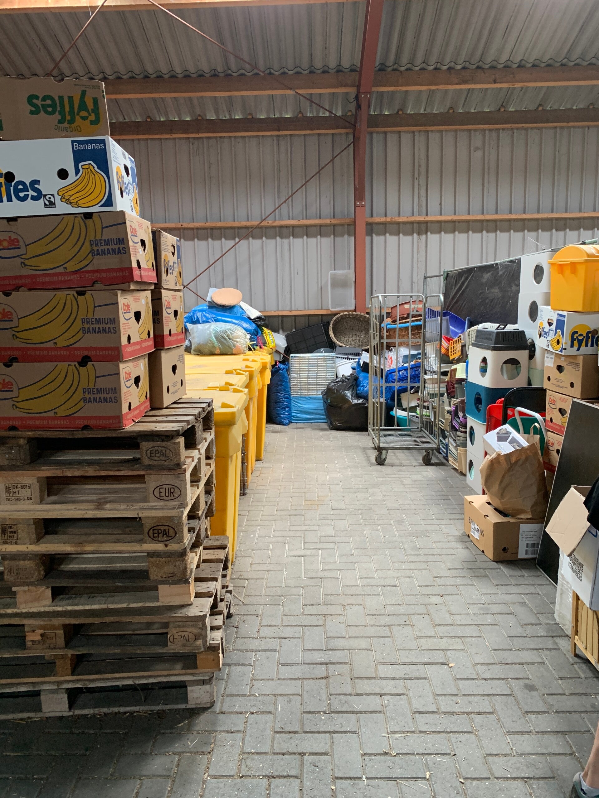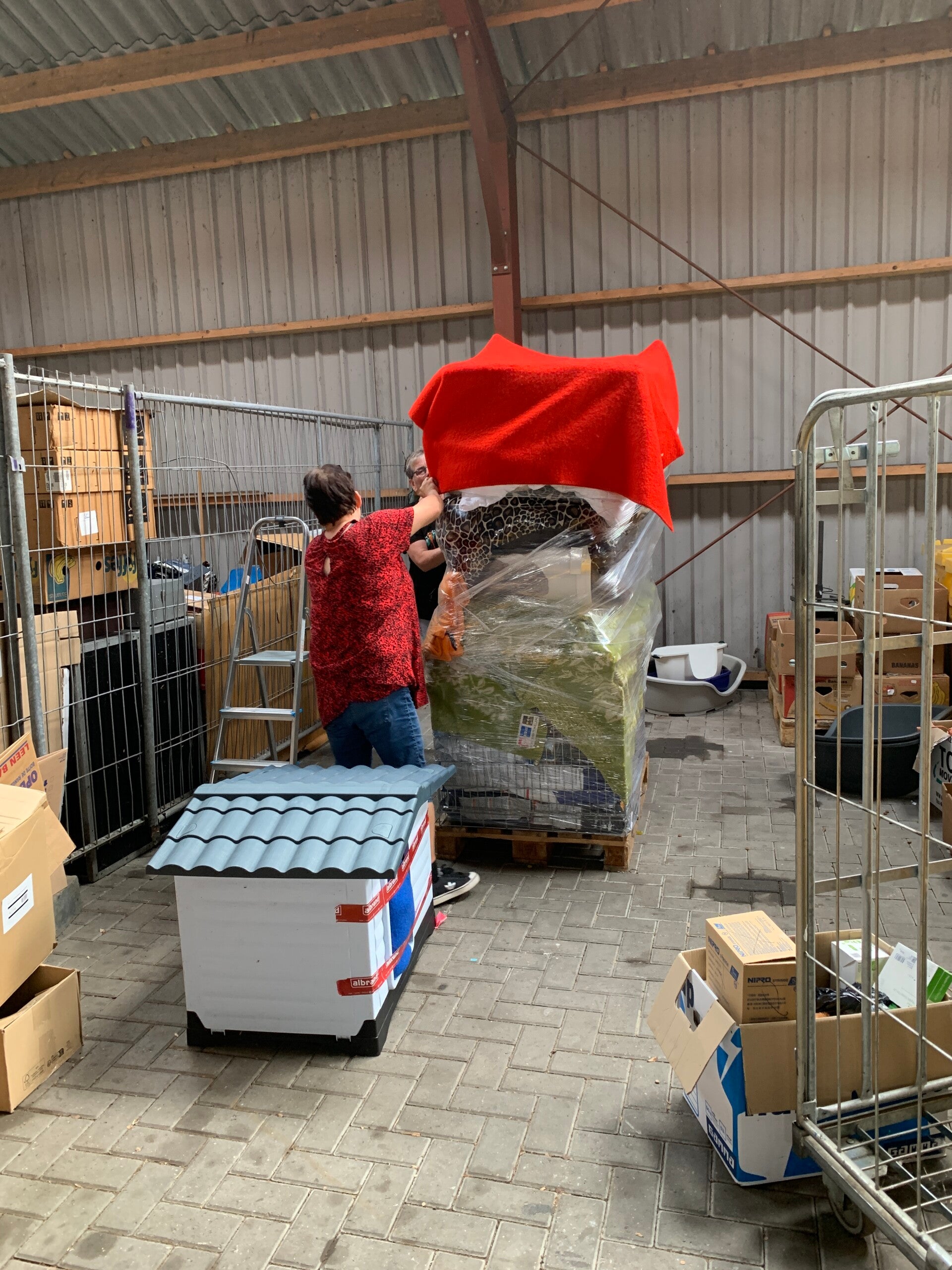 Vandaag waren we weer in de opslag aanwezig om onze handen uit de mouwen te steken. Marijke Lam, Sandra Veldhuizen en Harriet zijn aan de slag gegaan en het resultaat is een nette opgeruimde opslag en er zijn 2 pallets met hulpgoederen voor de honden en katten van Canis y Felis opgebouwd.