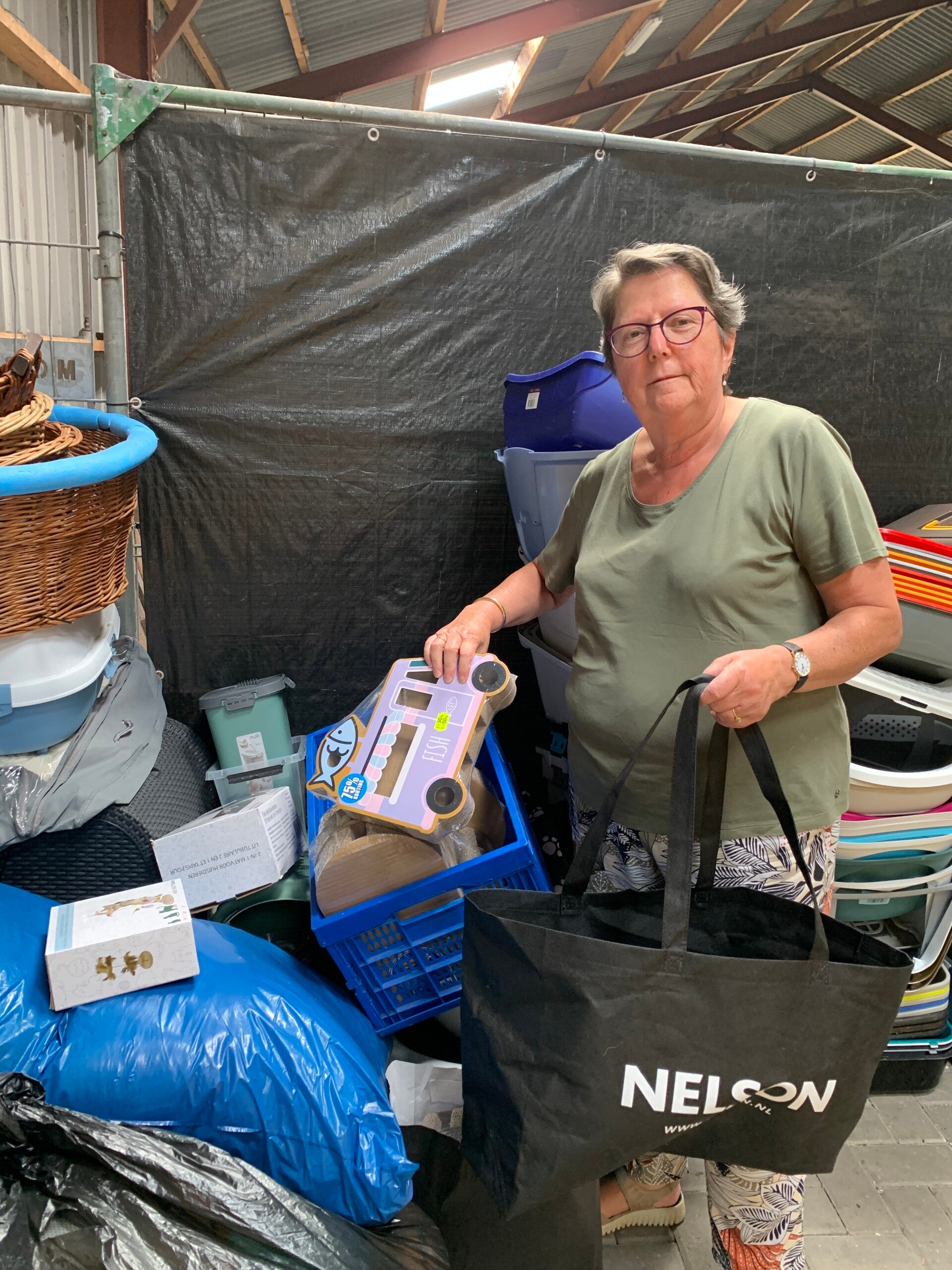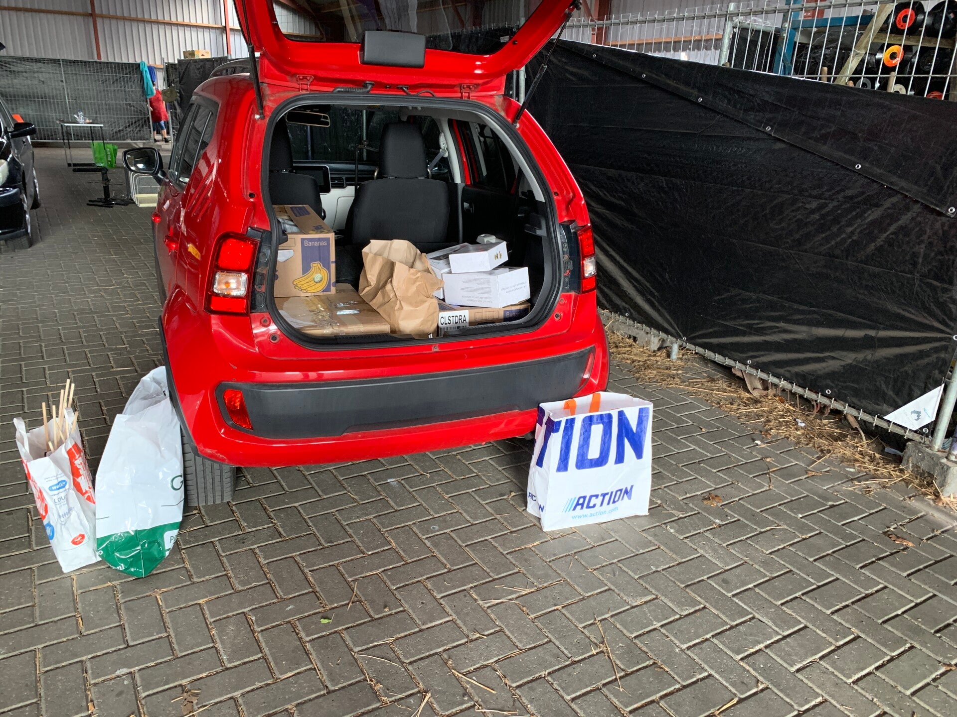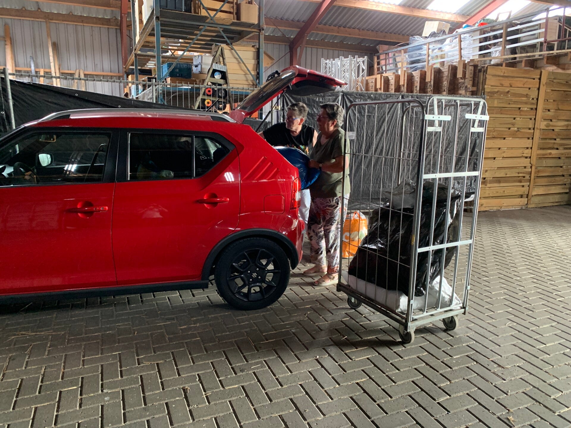 Maarten kwam ook nog een aantal grote zakken voer afleveren en Carin Marijs kwam de spullen die ze bij de dierenarts Houten en Lelystad had opgehaald brengen. Ook heeft ze onderweg Laag Soeren nog aangedaan en heeft een aantal goederen en voer nog bij Lucie Siebenheller opgehaald. Met een auto vol kwam Carin bij de opslag aan.