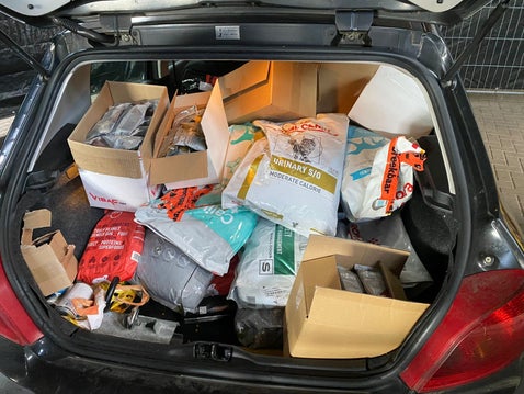 We mochten bij Voormijndier een grote lading voer ophalen. Kattenvoer, hondenvoer.. een hele auto tot de nok toe gevuld.Hier gaan heel veel dieren zo blij mee zijn.