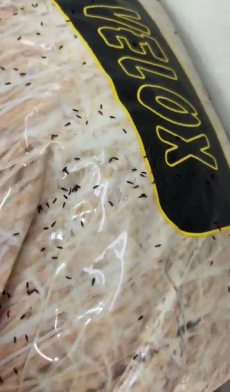 Ook in de dichte zakken zitten allemaal zwarte beestjes en het voer, zak voor zak is gecondoleerd.. maar jammer genoeg is bijna niets meer bruikbaar.