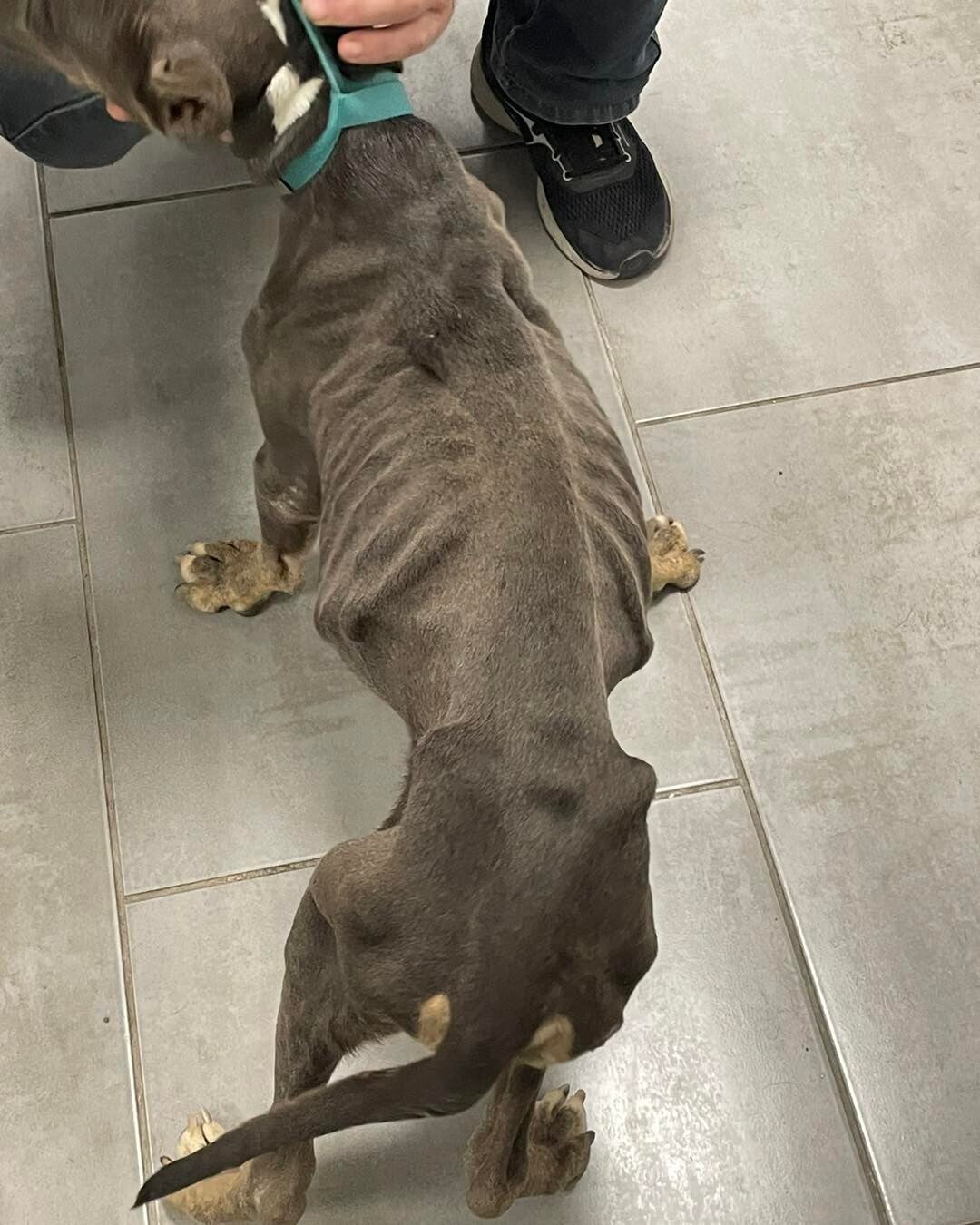 Georgina is een zak botten, die 12kg weegt, heeft een ernstige ondervoeding, ook een vrij gevorderde uitdroging.