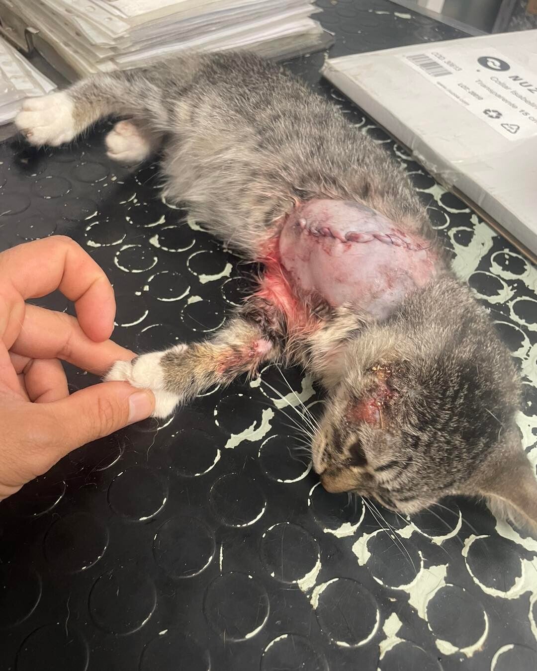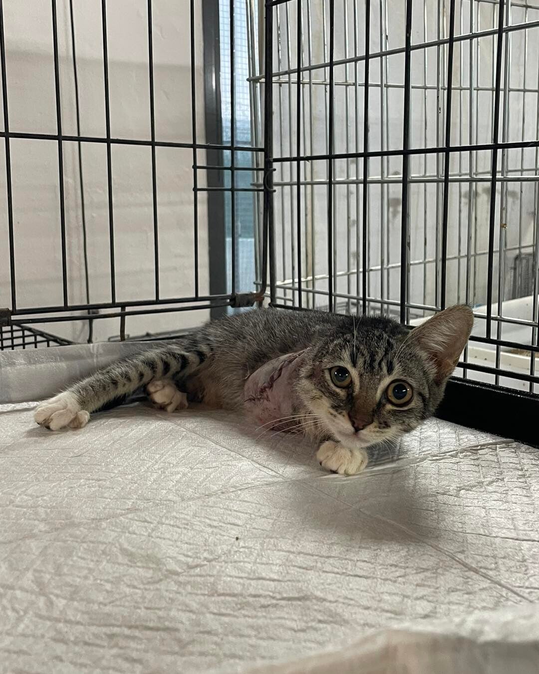 Gistermorgen ging Isra naar de quarantaine ruimte, waar Emiliana ook verblijft en hij kreeg de schrik van zijn leven. Ze zat daar in de bench en miste haar voorpootje.. Tot op heden heeft hij geen idee wat er nu gebeurd is.