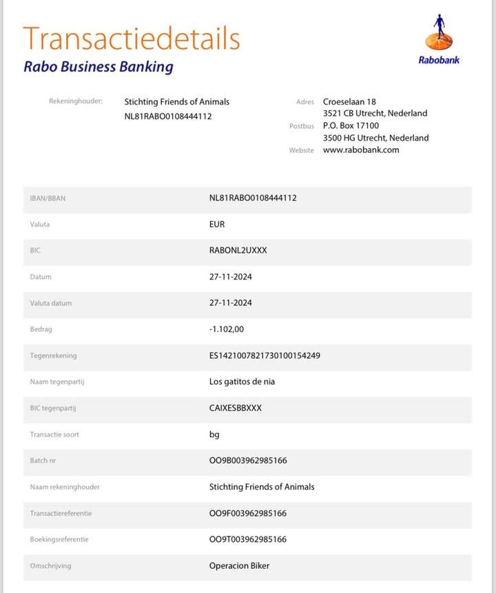 Wil je helpen en een donatie doen? Dit kan dat op: NL81 RABO 0108 444112 - t.n.v Friends of Animals te Vledder o.v.v Biker of via het betaalverzoek https://betaalverzoek.rabobank.nl/betaalverzoek/?id=fHxRzWP2SP6YmryJbNTaRw&qsl_reqcnt=1