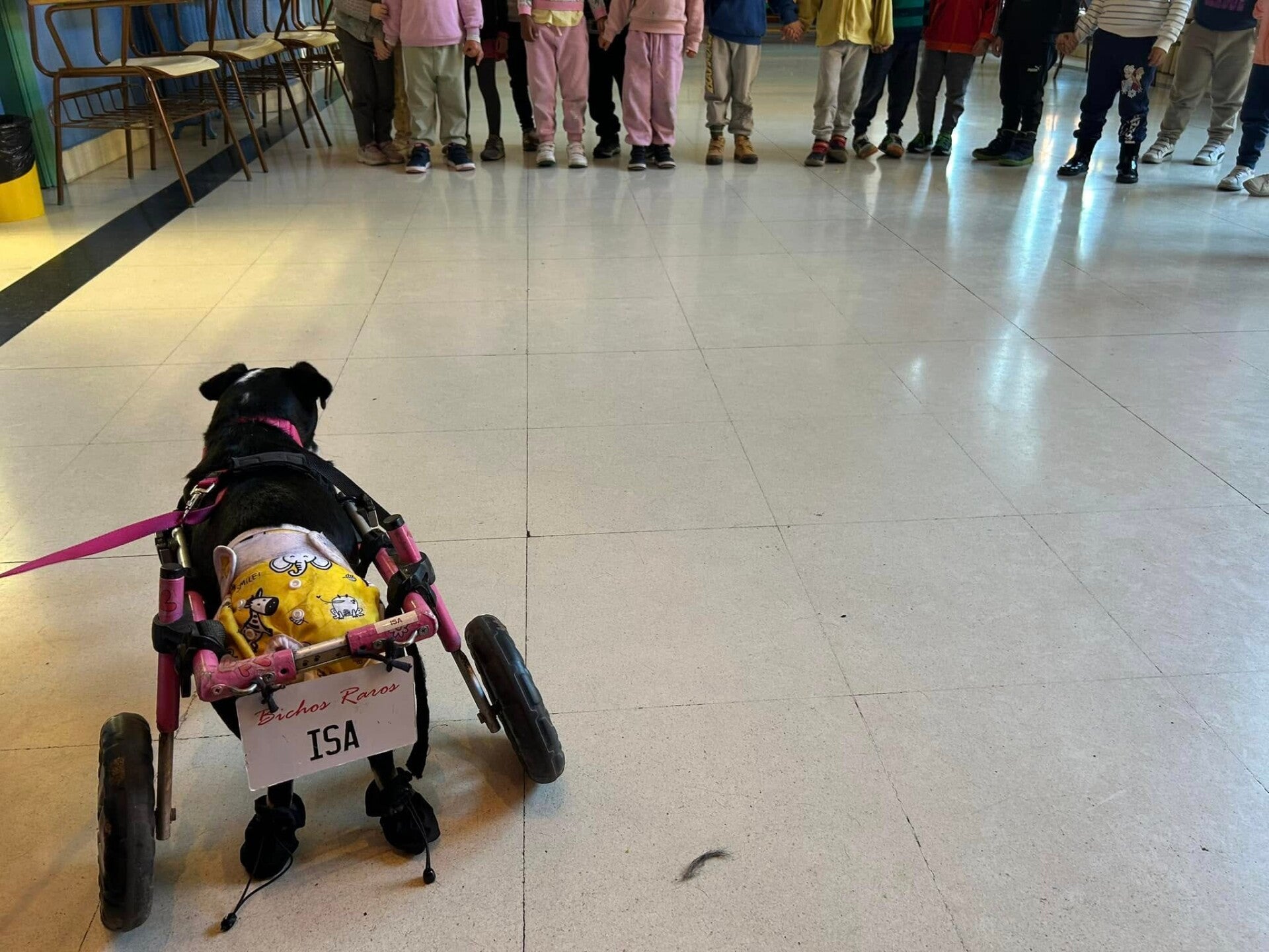 De gedoneerde schoentjes gaan we via de post naar BichosRaros in Madrid sturen. Deze organisatie vangt alleen gehandicapte/verlamde dieren op. Ze hebben oa 37 honden die in een rolstoel zitte en deze schoentjes dus heel goed kunnen gebruiken ter bescherming van de pootjes.