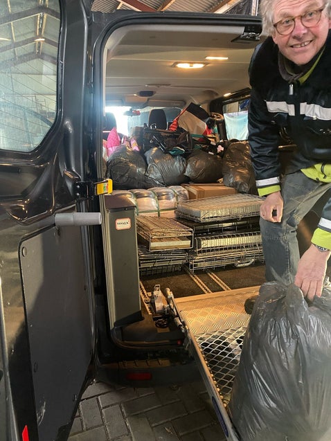Vandaag is het wel de dag voor de goederen.. want Marja Herfst-Kaan kwam naar de opslag met een bus vol donaties voor ons.