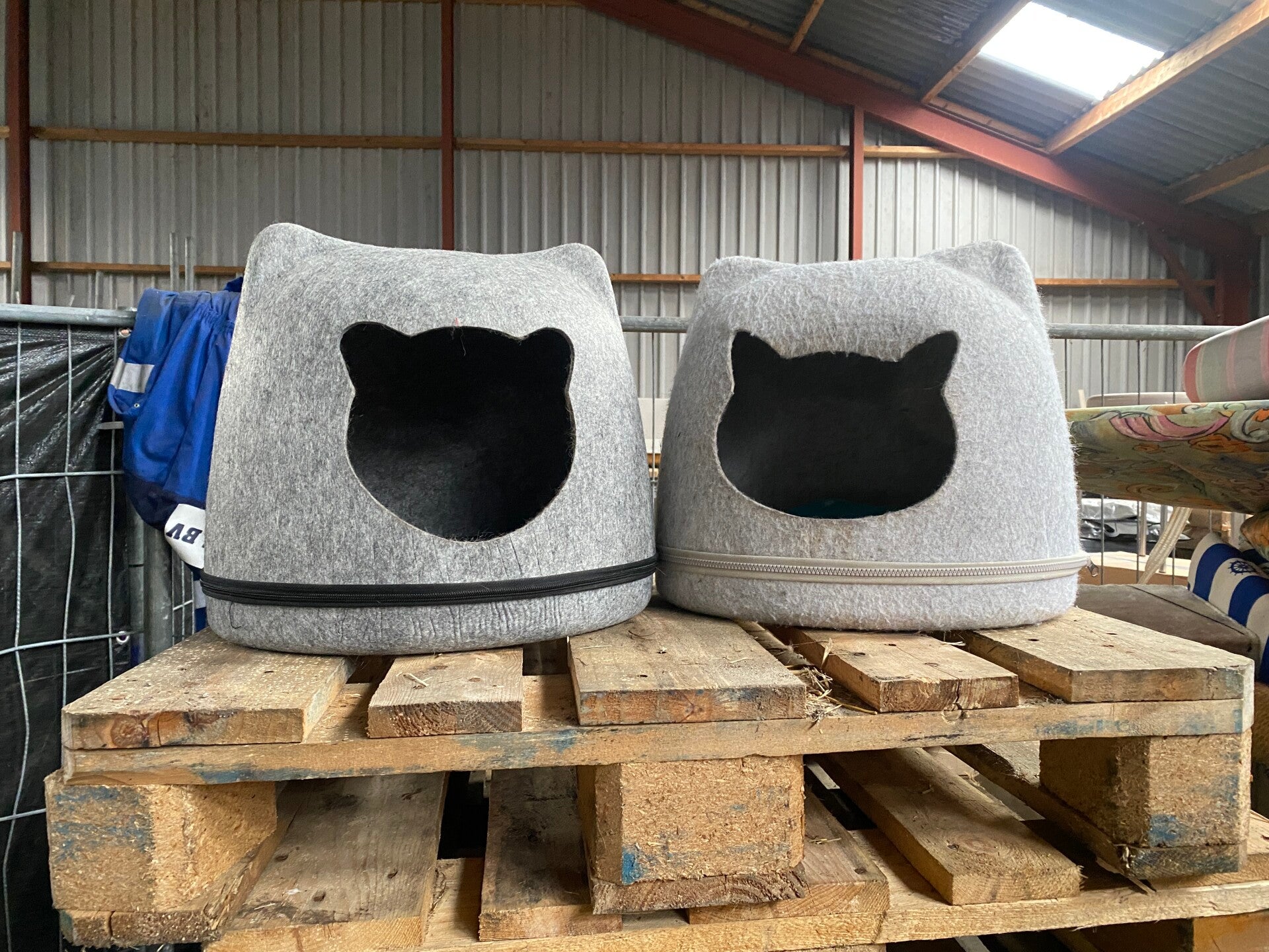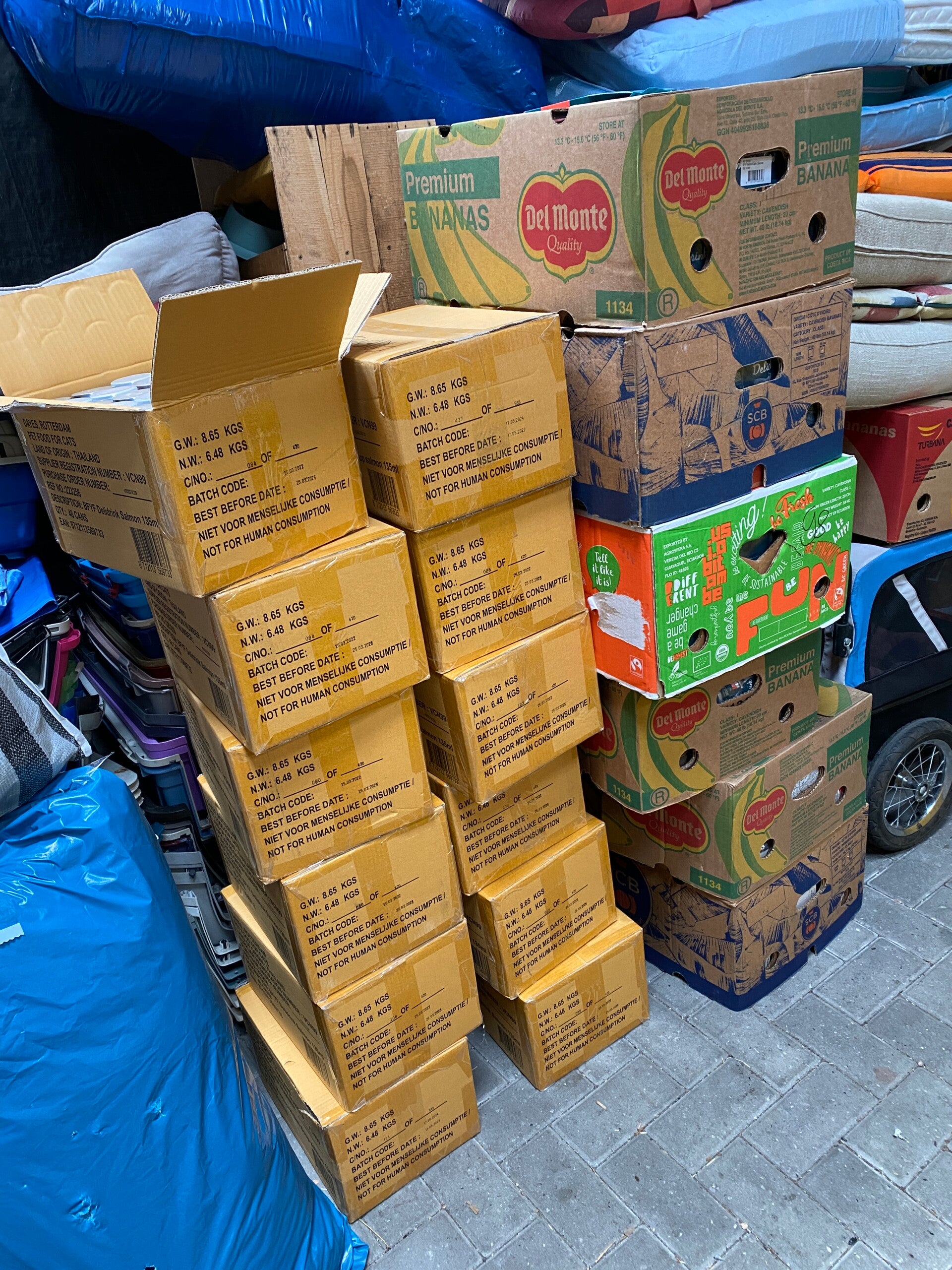 Een bus vol met mandjes, matrasjes, dekens, tuinstoelkussens, krabpaal, leuke poezenmandjes. Bananendozen vol met katten snacks en kattenmelk. Zo geweldig en we zijn zo ontzettend dankbaar voor deze samenwerking. ❤
