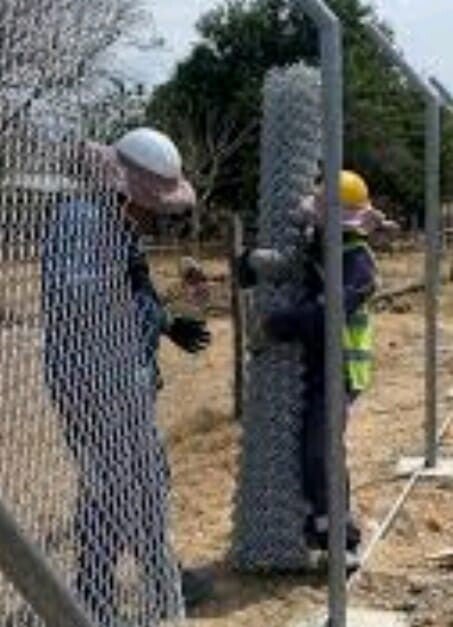 10 juni - Ze zijn druk bezig met het hekwerk, het is momenteel 40 graden dus ze werken alleen in de avonduren als het iets koeler is. Op de foto's een gedeelte die compleet is vervangen.