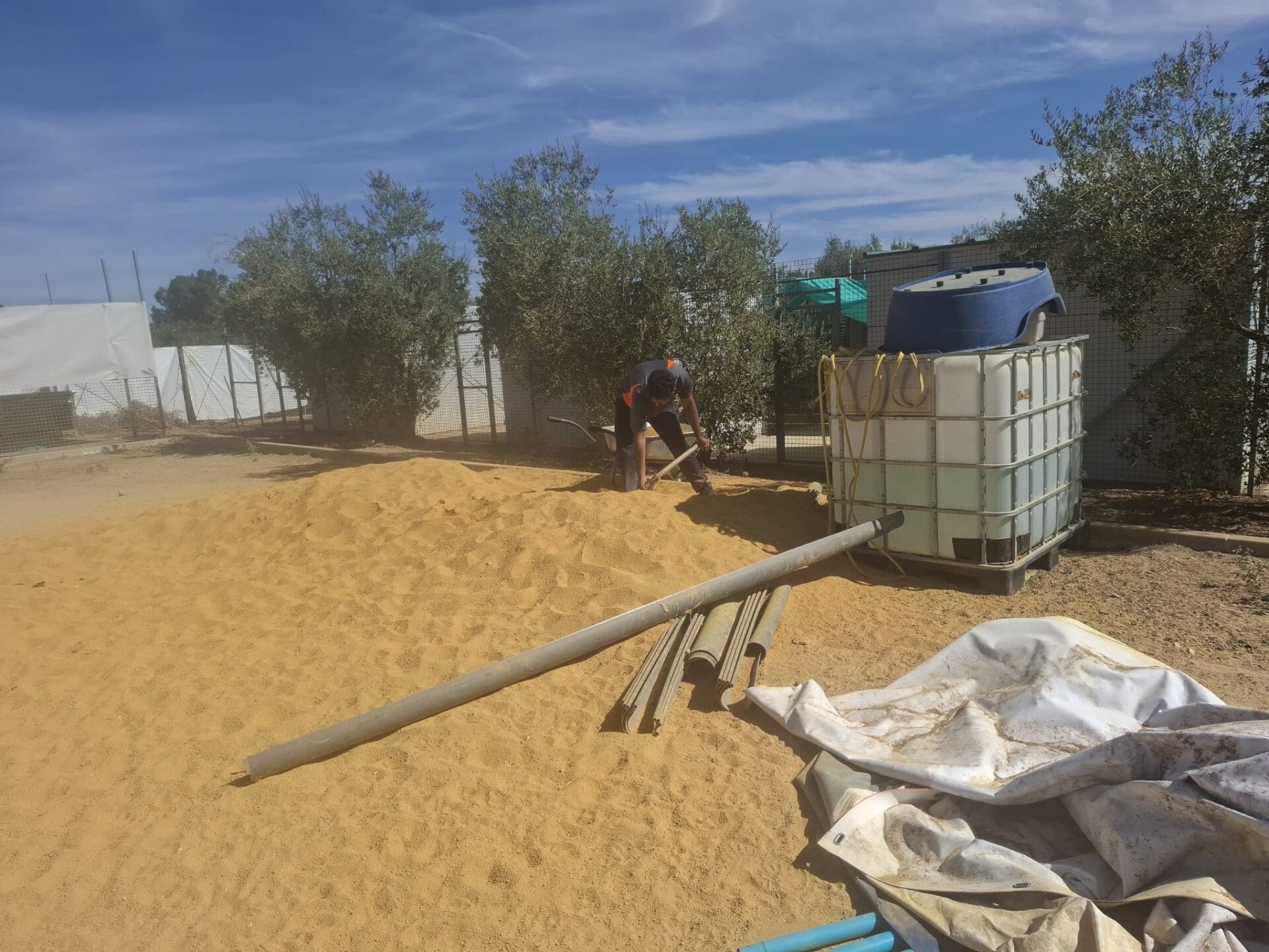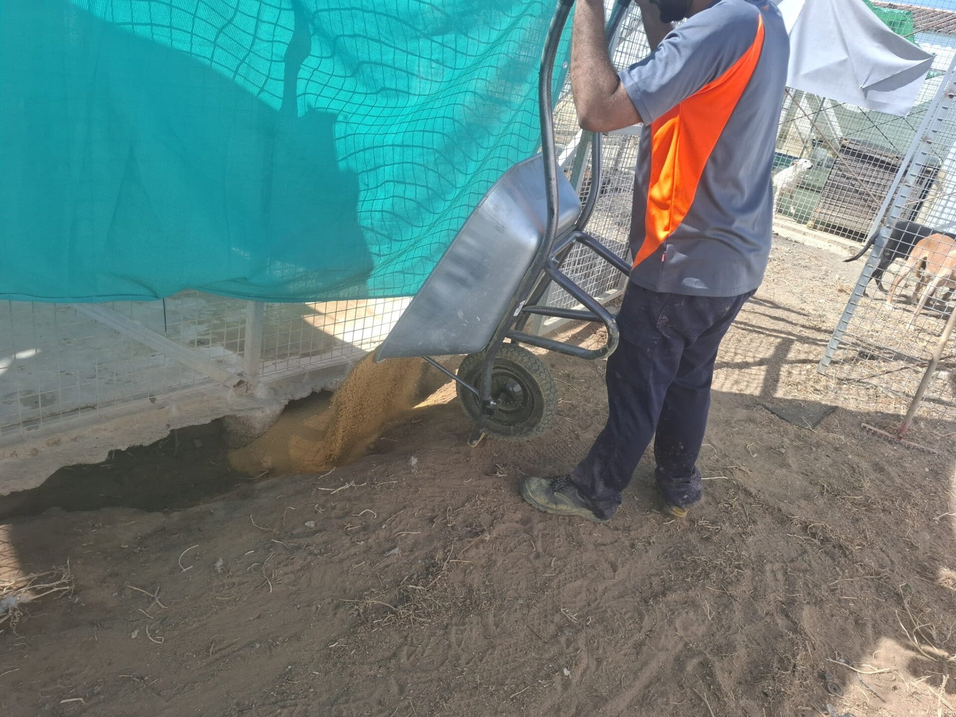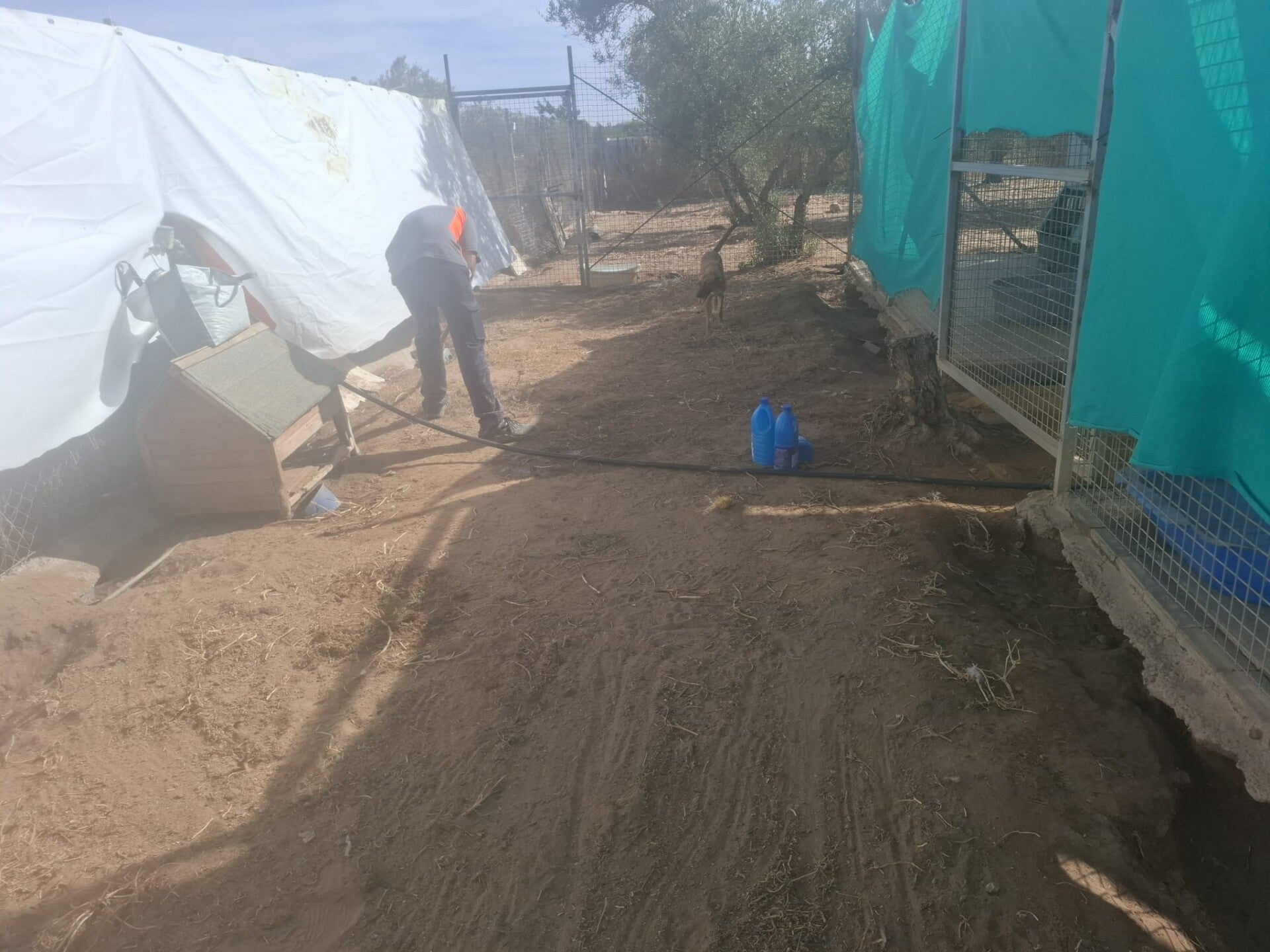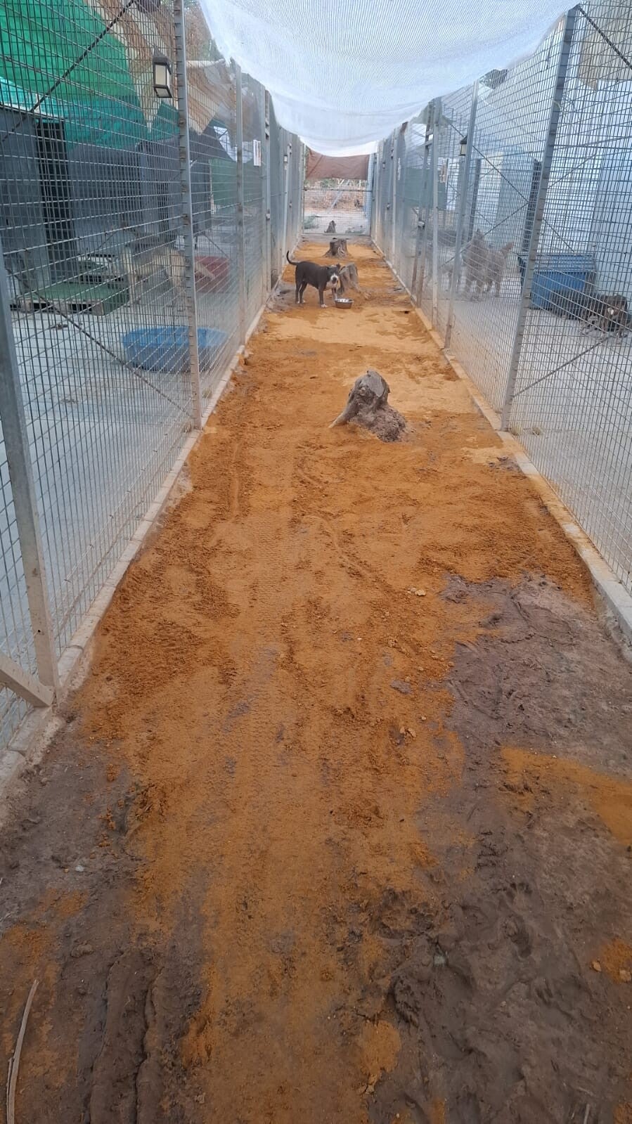 30 augustus -De temperaturen zijn gelukkig gezakt in Spanje en hoewel het nu nog steeds 35 graden is... gaan ze weer aan de slag met het opknappen van het asiel. De gaten worden gevuld op het terrein en bij de kennels met zand en cement. Alles wordt weer dicht gemaakt en verstevigd zodat alle kennels weer veilig zijn voor de honden.