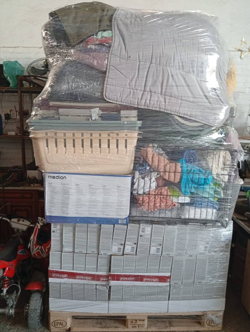 Gisteravond laat zijn de 2 pallets aangekomen bij Las Gateras de San Juan Een kennis van hun heeft de pallets in zijn garage gezet omdat ze bang waren misschien ook beroofd te worden. Vanmiddag gaan ze aan de slag om de pallets af te bouwen.