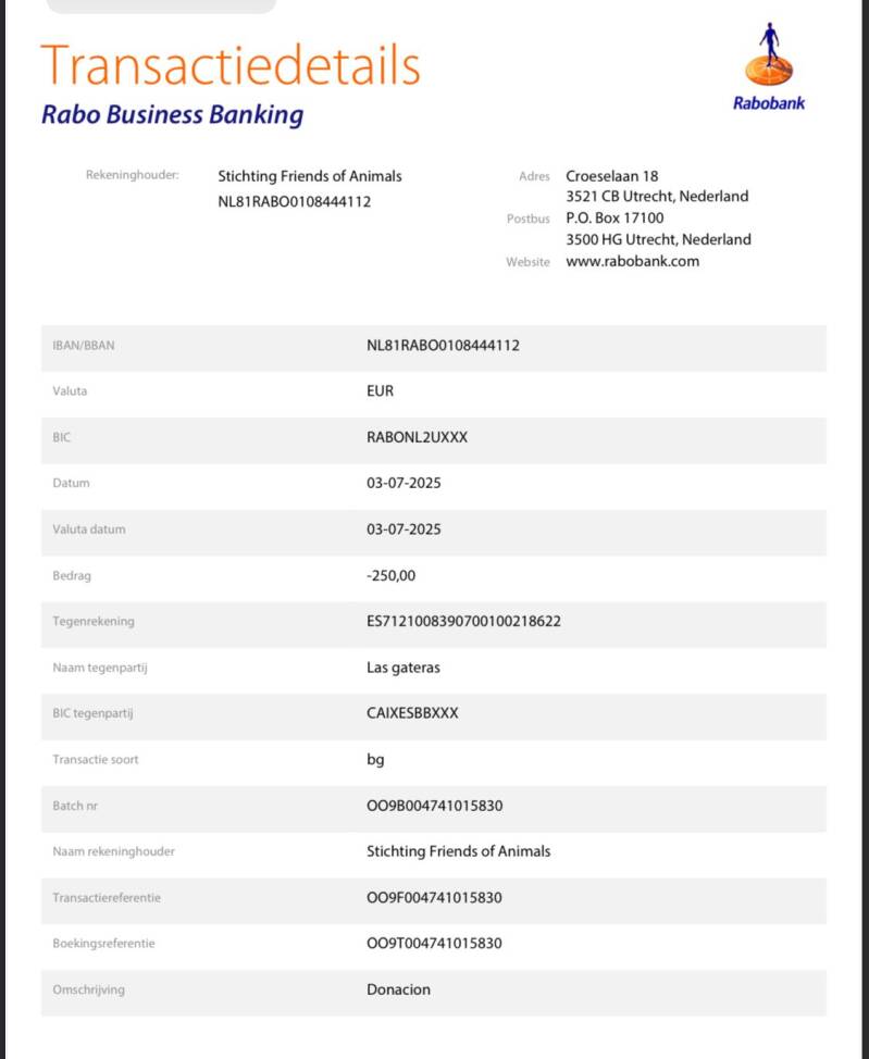 Niet alleen kreeg Las Gateras de San Juan 2 pallets met hulpgoederen maar we konden ook 250 euro overmaken, dit waren de donaties die wij voor hun mochten ontvangen.