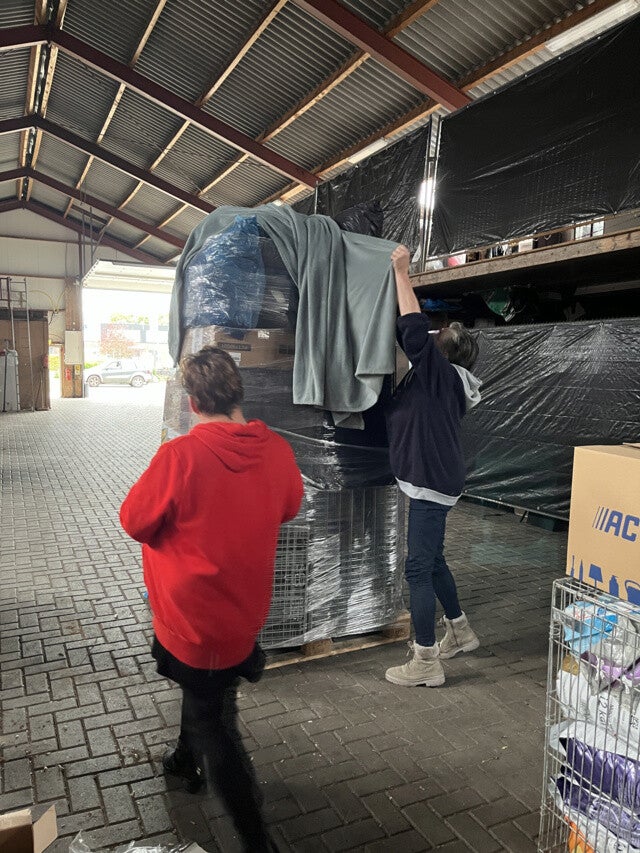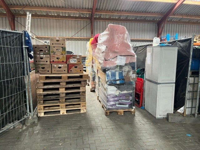 Vandaag is er heel hard gewerkt in de opslag, Marijke Lam, Sandra Veldhuizen, Jo Komies, John en Harriet hebben flink hun best gedaan want maar liefst 6 pallets zijn er opgebouwd.