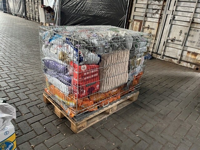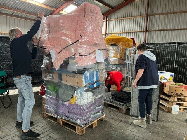 Ook gaan de 3 pallets die al klaar stonden mee met dit transport en die sturen we naar Sos animalcazar