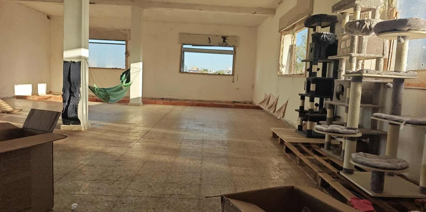 De vrijwilligers van Garra Felina zijn al druk bezig om de krabpalen in elkaar te zetten en de ruimtes van de katten in te richten. Super leuk om te zien dat de katten gelijk er al gebruik van nemen.