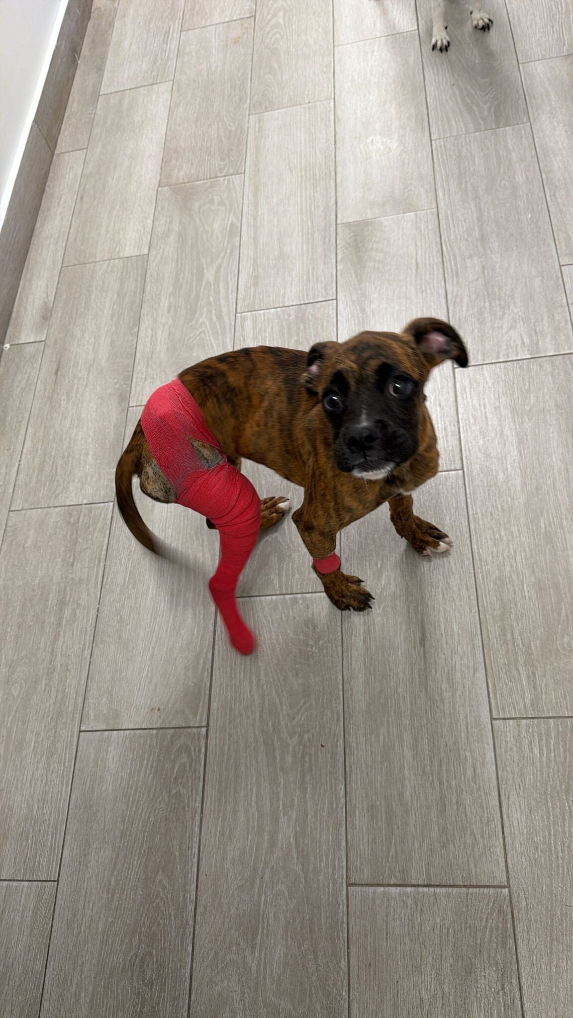 Het wordt nog een spannend en kwetsbaar traject, maar met een beetje geluk en veel liefde zal ze straks weer vrolijk rond kunnen huppelen, precies zoals een pup van 3 maanden hoort te doen.