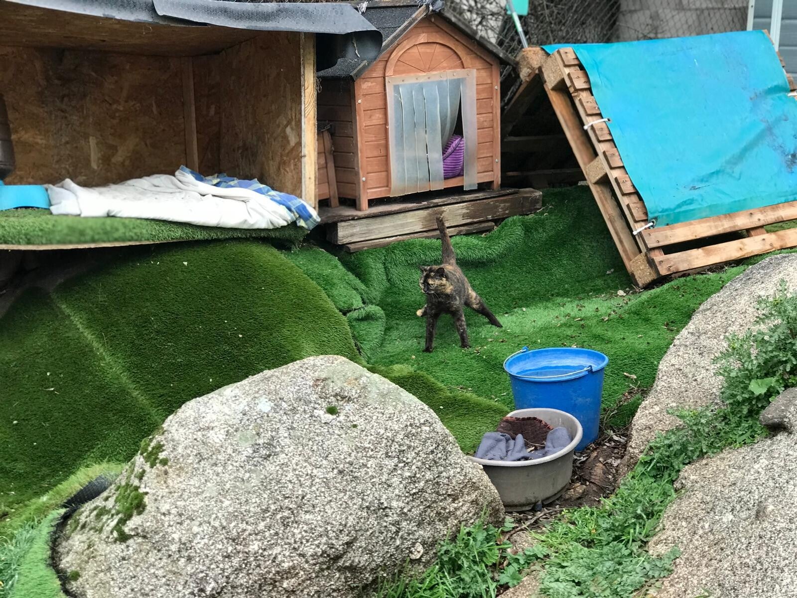 BICHOSRAROS hebben een asiel dat is aangepast aan de speciale behoeften van elk van de dieren. En de mensen die het beheren, leven met hen. Ze zijn verdeeld door hun handicap/ziekte en klinische behoeften, evenals door hun karakters, ze leven allemaal in vrijheid zonder kennels of kooien. Ze genieten van verwarmde hutten in de winter en goede schaduw en zwembaden in de zomer.