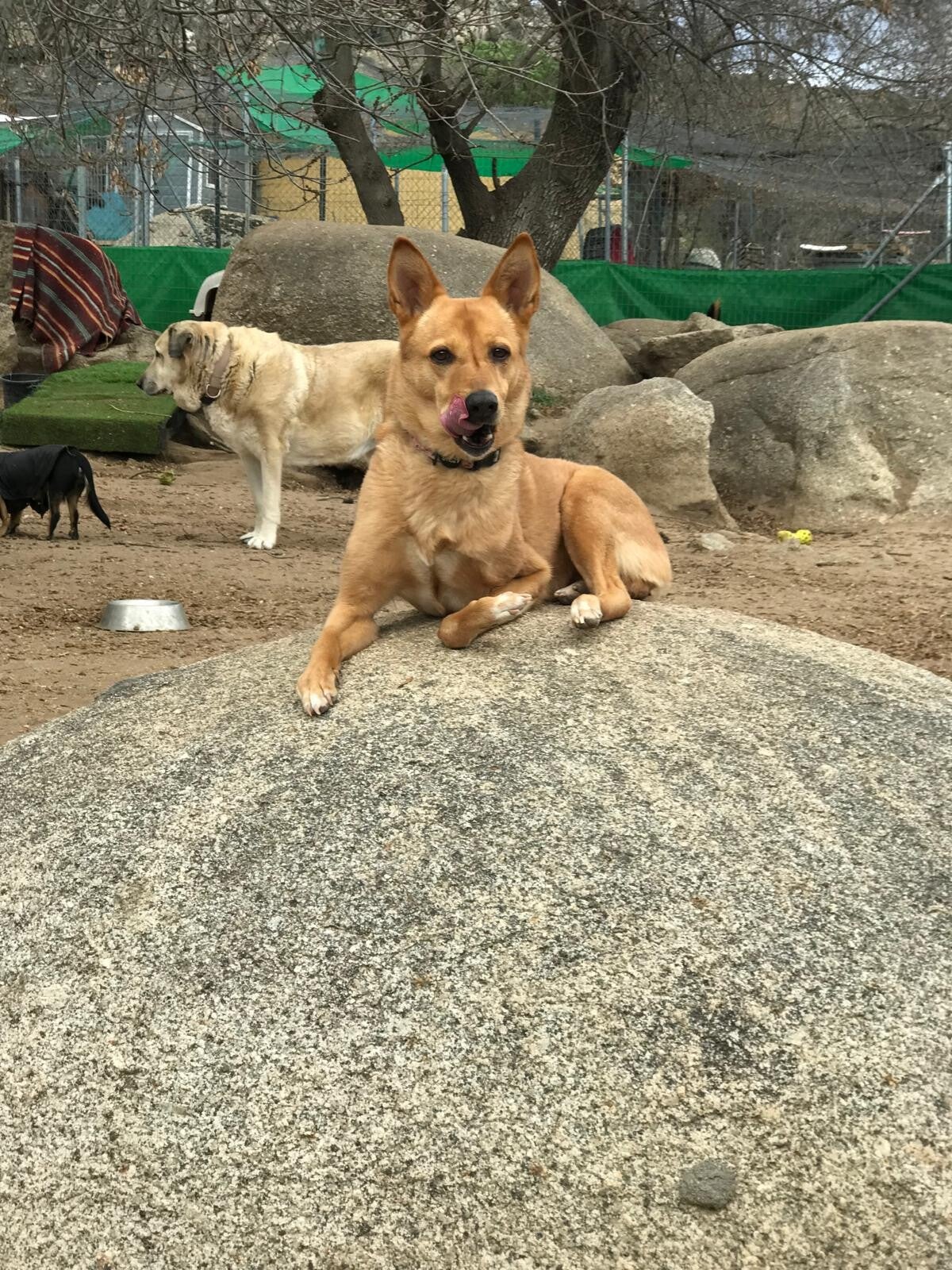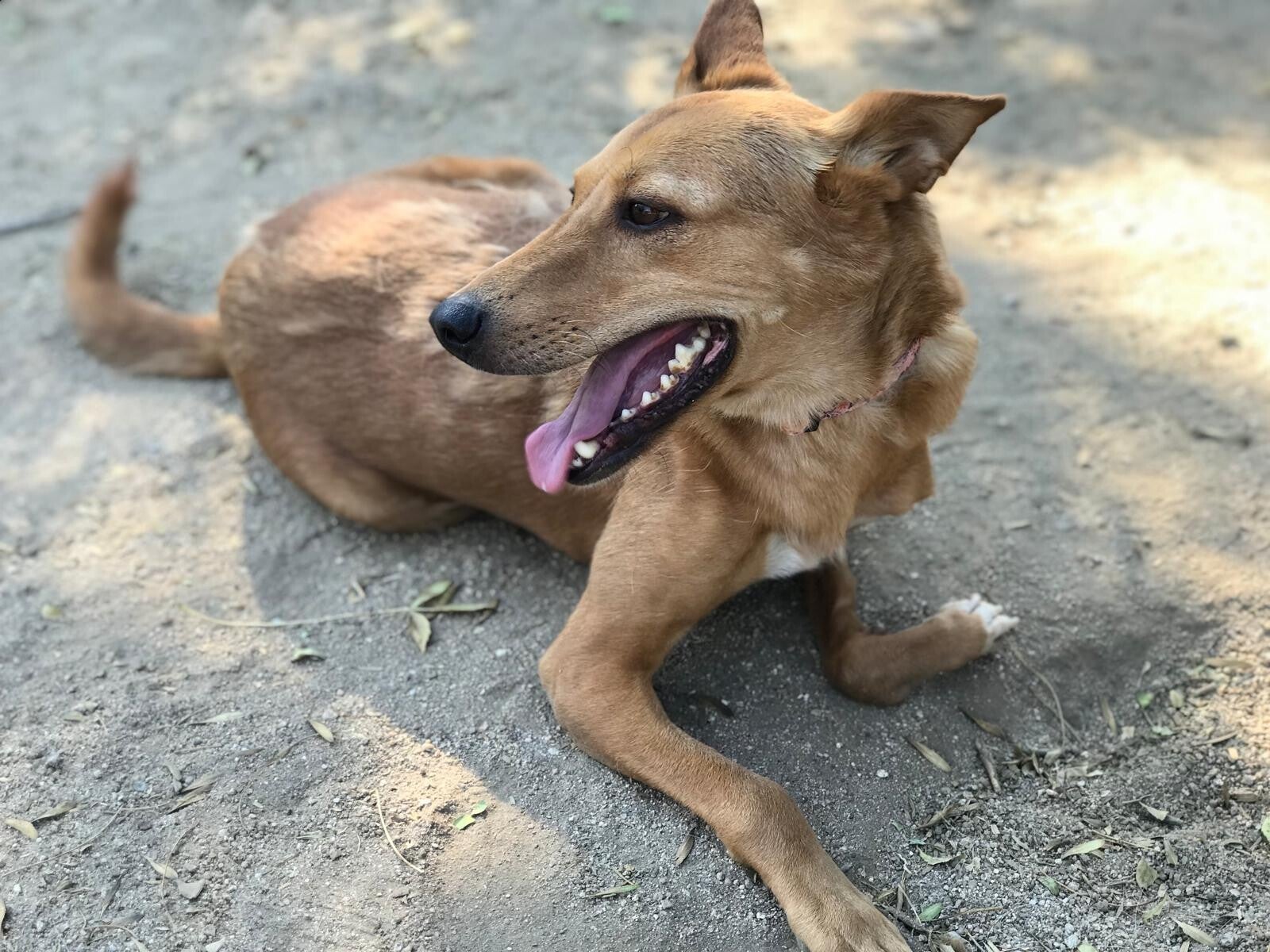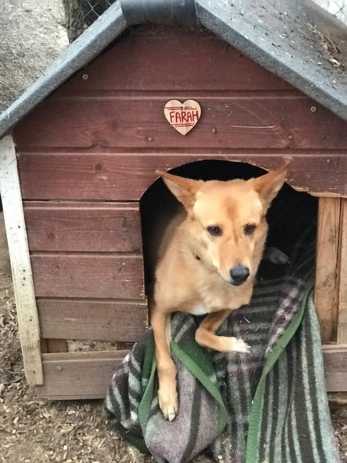FARAH kwam uit Egypte met haar linker voorpoot volledig misvormd als gevolg van ondervoeding, als pup was ze al gedumpt. Ze is ongeveer 7 jaar oud en is puur plezier. Ze is altijd aan het lachen. Haar grootste hobby is het verzamelen en opbergen van speelgoed in haar hokje (ooit telden we er meer dan 15). Ze is erg lief en aanhankelijk.