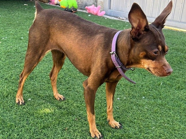 Deze lieve kleine pinscher, die slechts 4,8 kilo weegt, heet Bellota. Ze is geboren rond 14 juni 2016. Ze is samen met China bij Rescate gekomen omdat hun baasje niet meer voor ze kon zorgen. Ze is een actieve en speelse hond die dol is op knuffelen. Ze kan het heel goed met iedereen vinden. Ze brengt haar dagen door met rondrennen en om genegenheid vragen