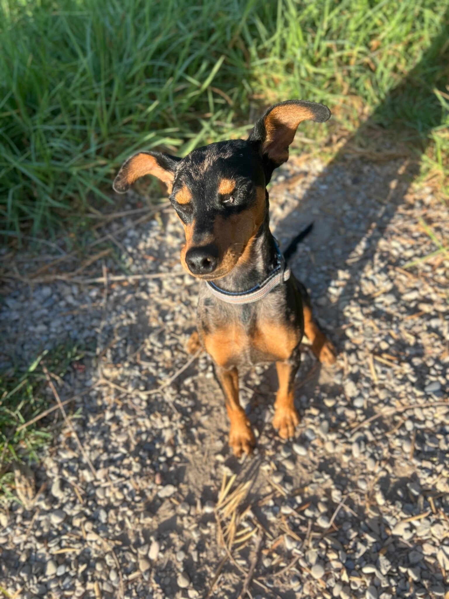 Deze pup is Gosbi, een schattig dwerg pinschertje van slechts 5,6 kilo. Gosbi is geboren rond 30 oktober 2024 en is een gekke, speelse en onvermoeibare, harige puber die met iedereen overweg kan en graag bij mensen is en over zijn buik geaaid wordt.